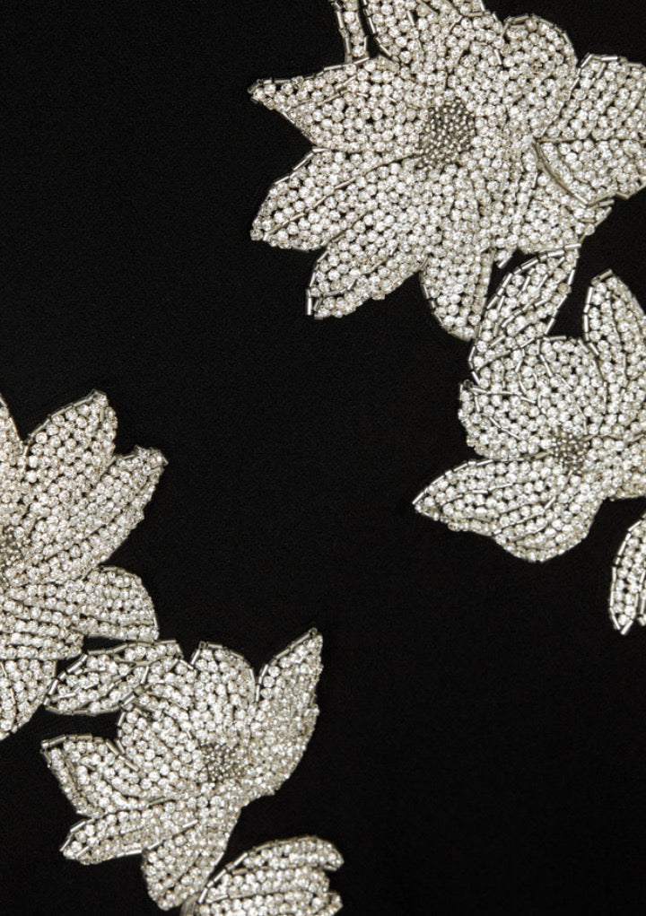 -Mod weight, heavily embellished, non stretchy fabric