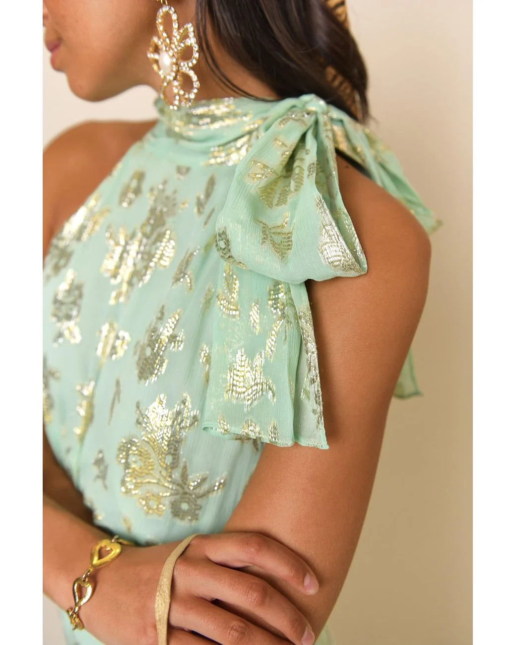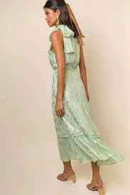 Beautifully crafted from 100% silk chiffon, this luxe statement piece is updated with silver lamé spots and features a halterneck with side tie, high fitted waist and a distinctive tiered bottom. Wear this gorgeous RIXO midi dress with heels to ensure you turn heads at any event.