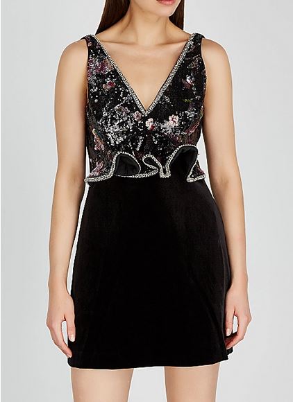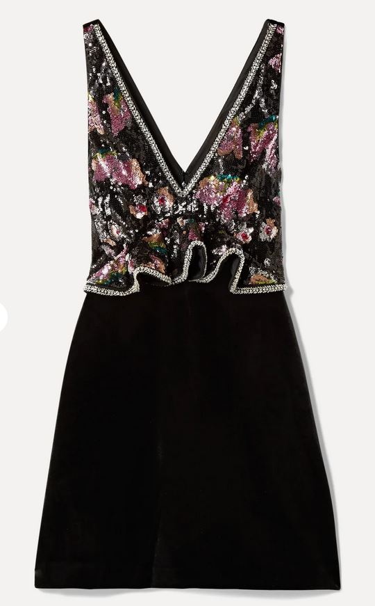 Self-Portrait’s black velvet dress will ensure you make an entrance after dark. Designed with an alluring plunge neckline, this mini is adorned with sequin embellishments in the label’s Midnight Bloom pattern and finished with a ruffle at the waist to enhance its slim silhouette