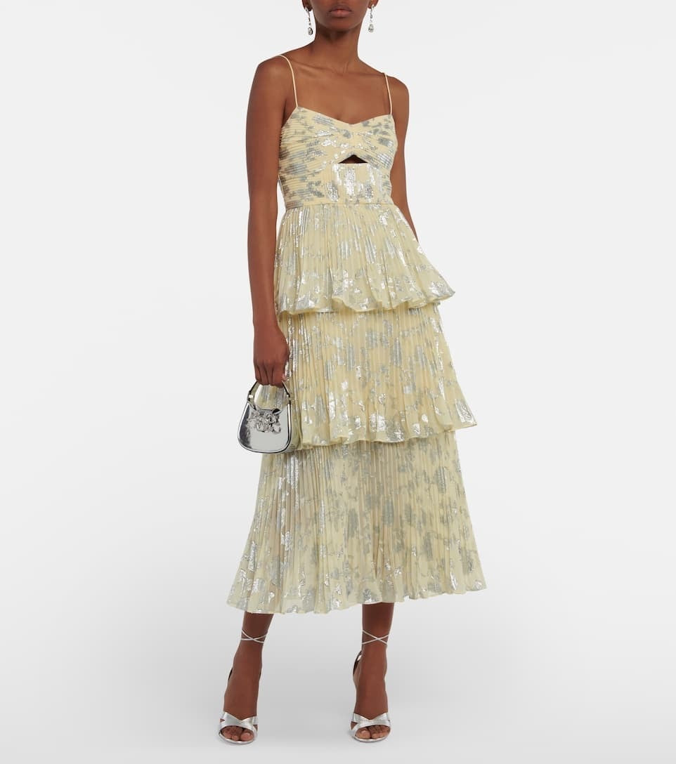 This dress from Self-Portrait speaks to the label’s ornate aesthetic. The jacquard construction is punctuated by metallic detailing, tiered ruffles and a geometric cut-out at the front.